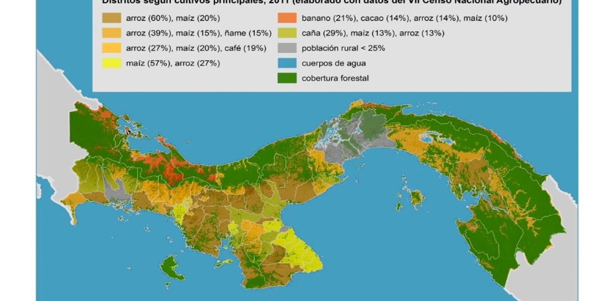 The distribution of production is shown on the map where the greatest contributions are in the provinces of Chiriquí, Veraguas and Herrera.
