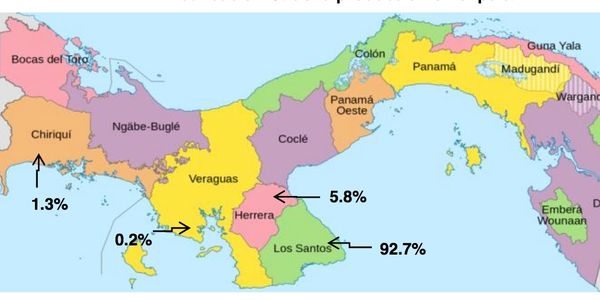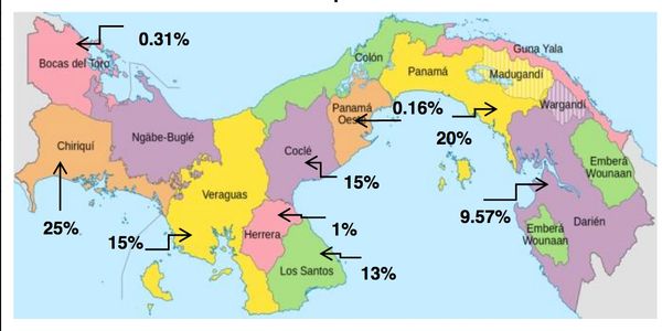 The greatest contribution occurs in the province of Chiriquí, followed by Coclé, to a lesser extent in Herrera and Los Santos.