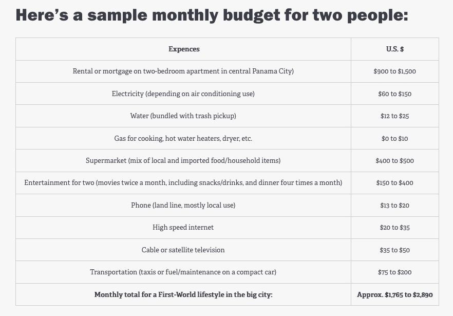 This chart was made by International Living, which I think is very well aligned with the reality in Panama.